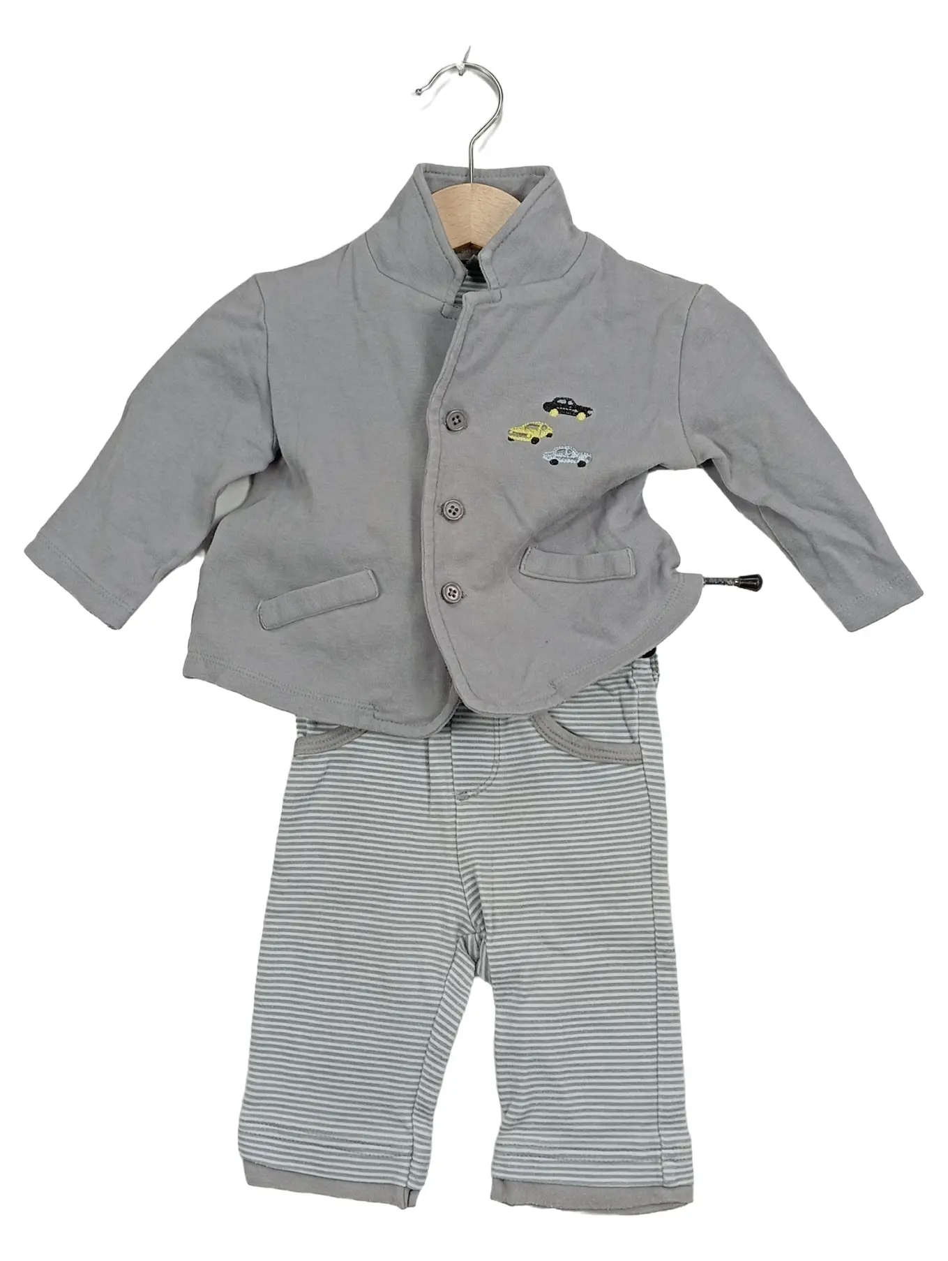 PETIT LEM Baby Jungen Twin Set Jacke Hose Gr. 68 6M Grau Auto Stickerei