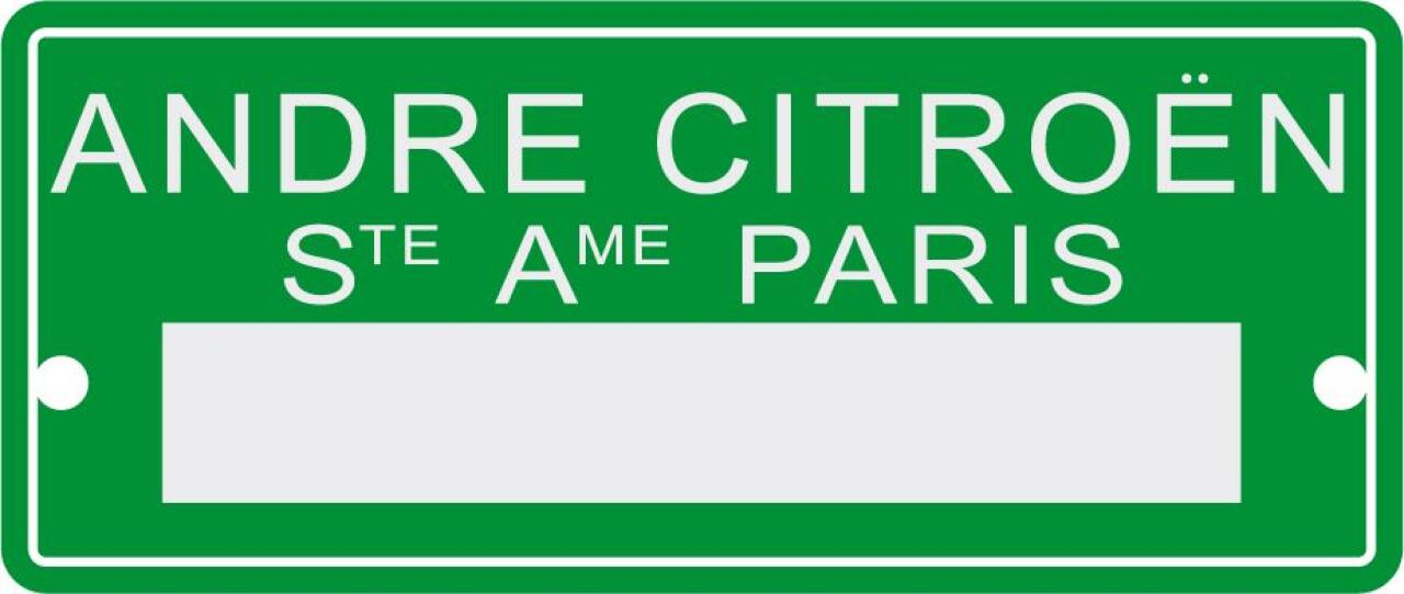 Typenschild grün, für Citroen. 78x40mm. 2 Bohrungen. (Metall). Die grünen Typenschilder wurden oft für Getriebekennzeichnung verwendet!