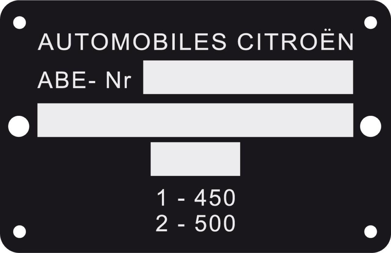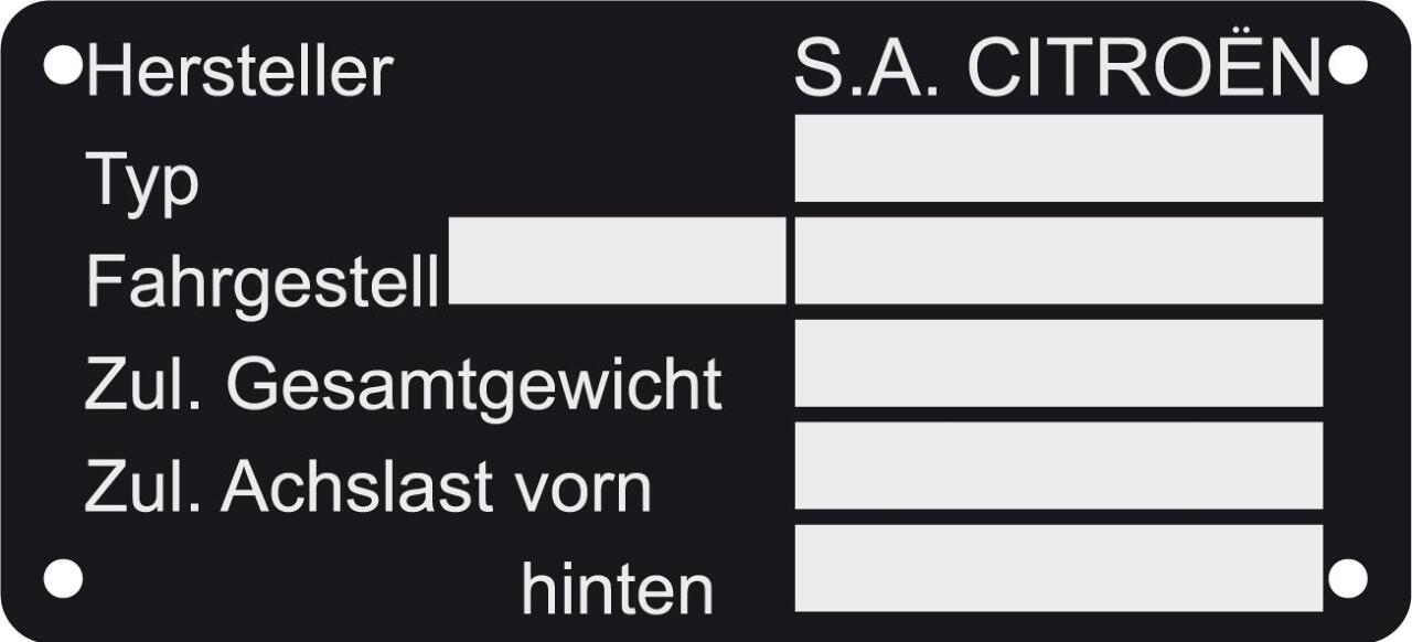 Typenschild, deutsche Ausführung, für Citroen. (Metall). 110x50mm. 4 Bohrungen.