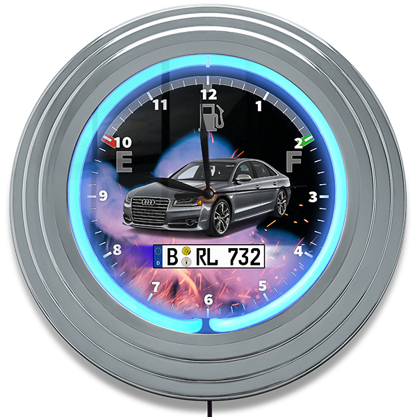 Neon Wanduhr - Personalisierte Uhr mit Nummernschild und Autofoto - Individuelles Männer Geschenk. Mache ein besonderes Geschenk für ihn!
