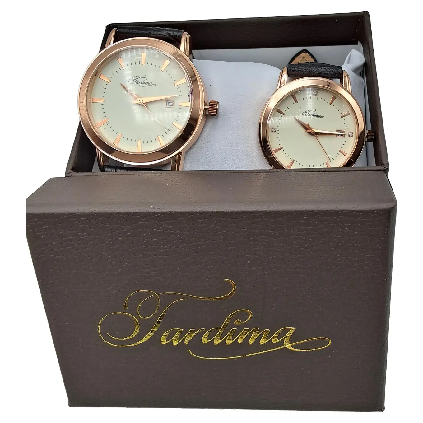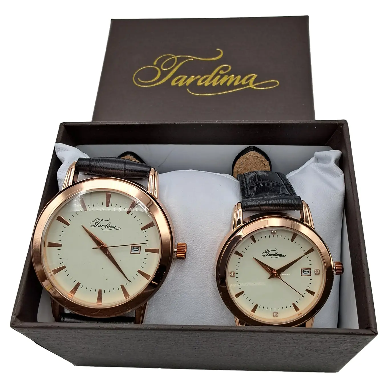 TARDIMA Damen Herren Uhren Set Partneruhren Gold Lederarmband Klassisch