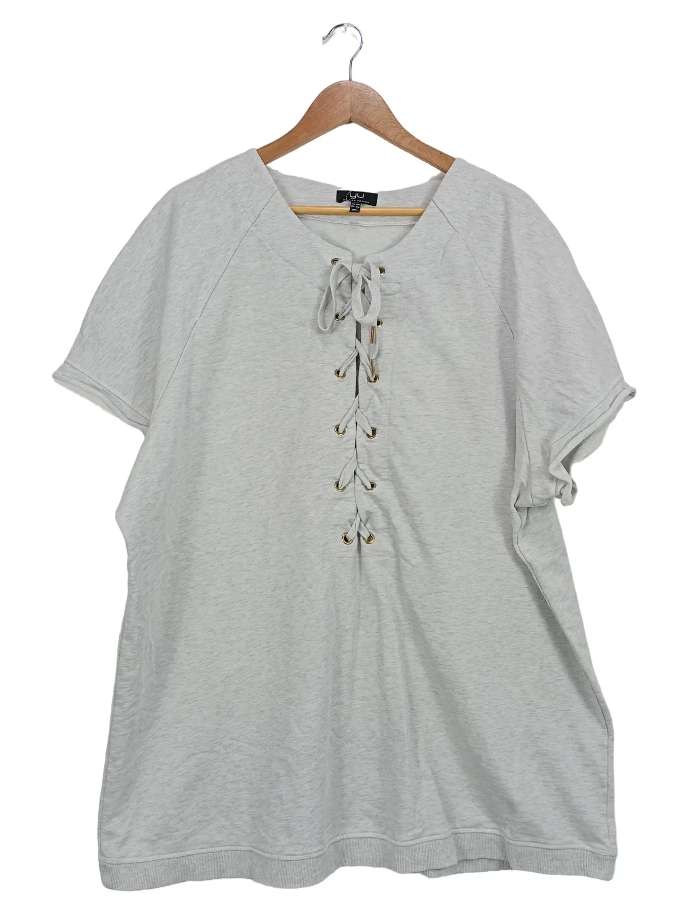 ULLA POPKEN Damen T-Shirt Grau Gr. 46/48 Casual Schnürung