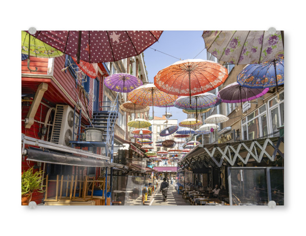 Acrylglasbild "Umbrella Street Istanbul" artboxONE - Reise,Städte / Istanbul - Bunt,Regenschirme,Umbrella street,Hoca tahsin,Karaköy,Istanbul,Türkei