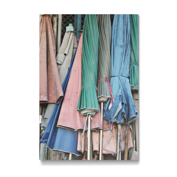 Red Umbrella - Leinwandbild Landschaft: 150x200 cm / Leinwand / Silberner Rahmen