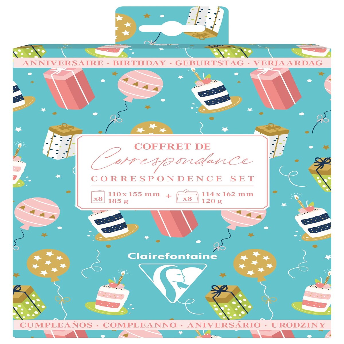 Clairefontaine 5x Thematisches Korrespondenzset, 8 Umschläge Pollen C6 (114x162mm) 120g + 8 Doppelkarten 110x155m 185g, Geburtstag - 81002C