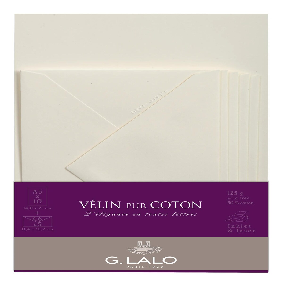 G.Lalo 5x Lalo, Korrespondenzset, 10 Blatt A5 und 5 Umschläge C6, Vélin pur Coton - Creme 61000L
