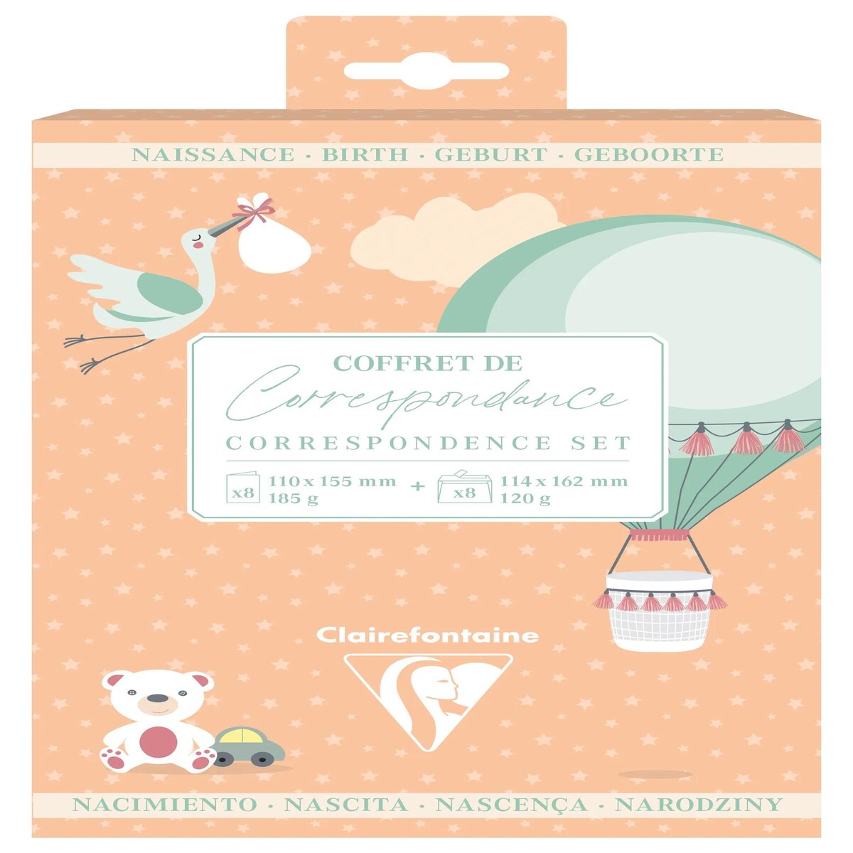 Clairefontaine 5x Thematisches Korrespondenzset, 8 Umschläge Pollen C6 (114x162mm) 120g + 8 Doppelkarten 110x155m 185g, Geburt - 81005C