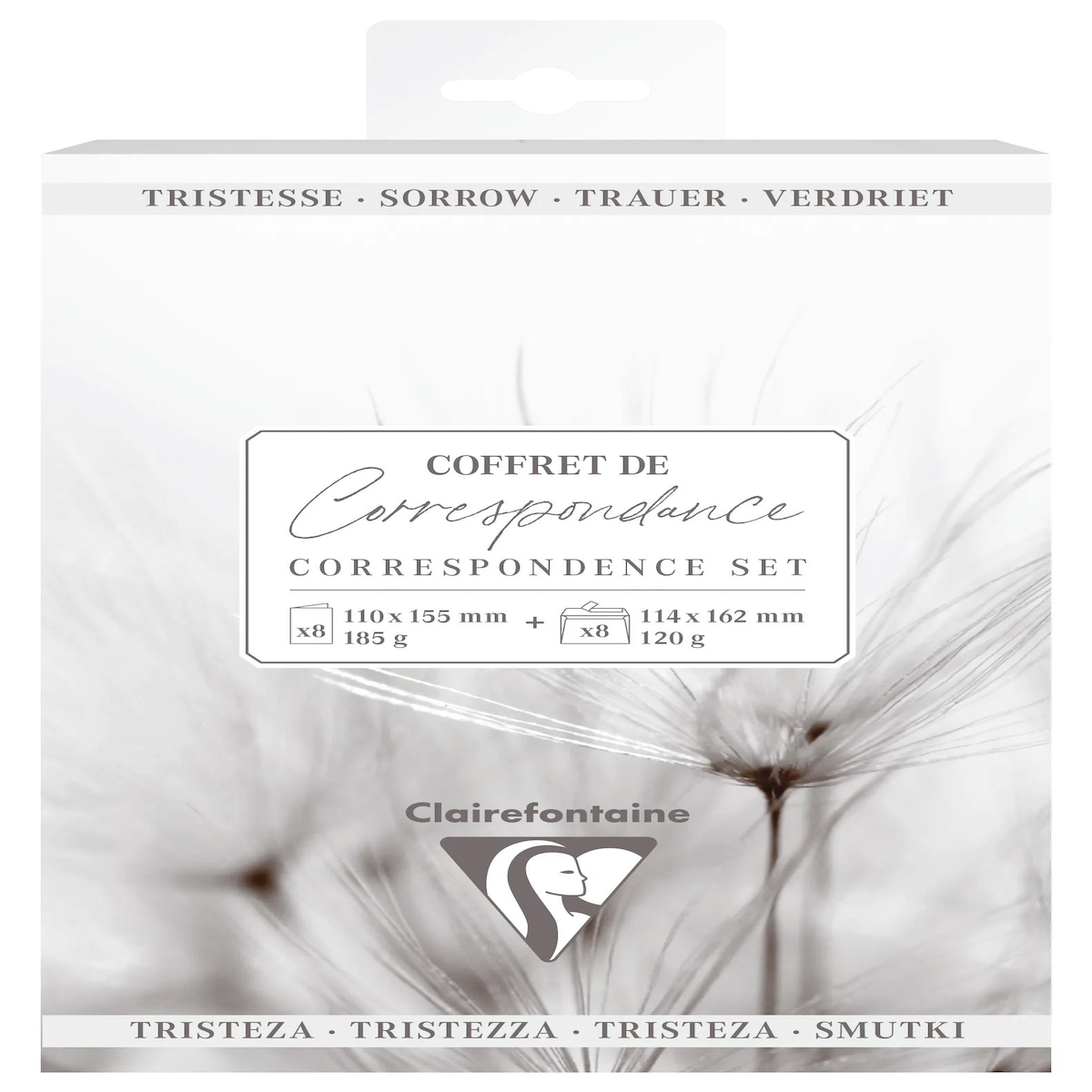 Clairefontaine 5x Thematisches Korrespondenzset, 8 Umschläge Pollen C6 (114x162mm) 120g + 8 Doppelkarten 110x155m185g, Beileidsbekundungen - 81003C