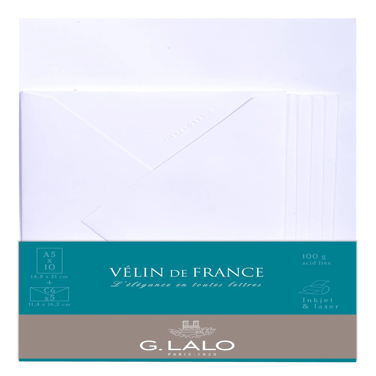 G.Lalo 5x Lalo, Korrespondenzset, 10 Blatt A5 und 5 Umschläge C6, Vélin de France - Weiß 61700L