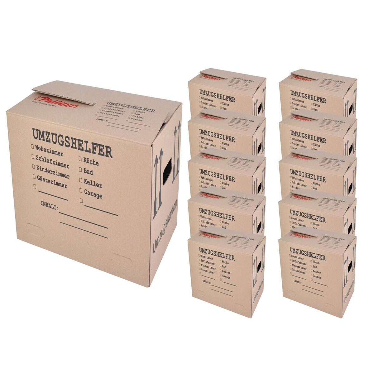 10 Umzugskartons Movebox Smart & Safe 2-wellig 30 kg belastbar Beschriftungsfeld Griffverstärkung