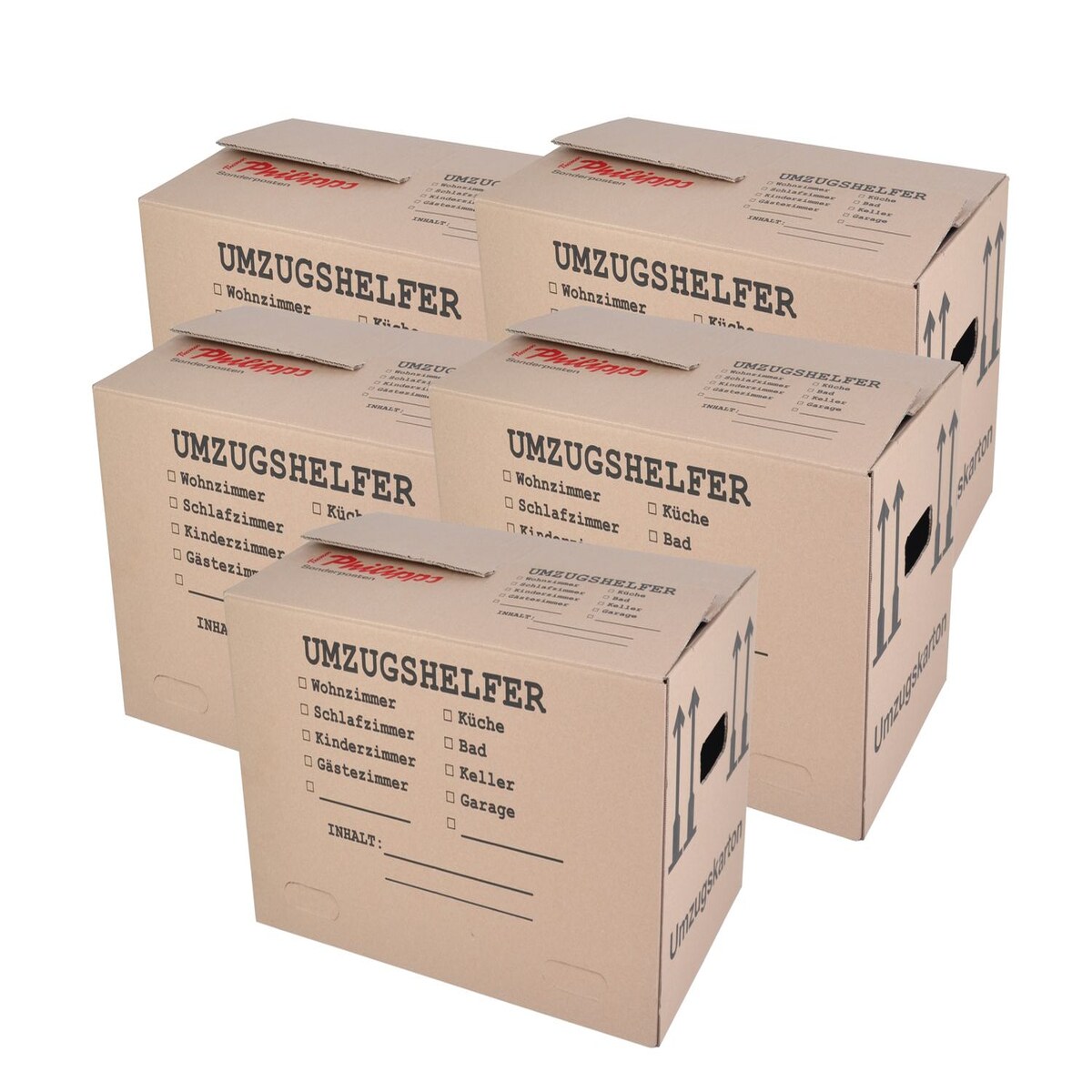 BURI 5er-Set Umzugskartons 41x35x34 Umzugskiste Bücherkiste Archivkarton Transportbox