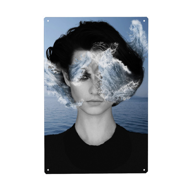 Metall Poster "Woman Wave" artboxONE - Natur,Menschen - Woman,Novelty,Decoration,Man,Waves,Sea,Meer,Water,Wasser,Frau,Female,Wellen,Blau,Nature,Natur