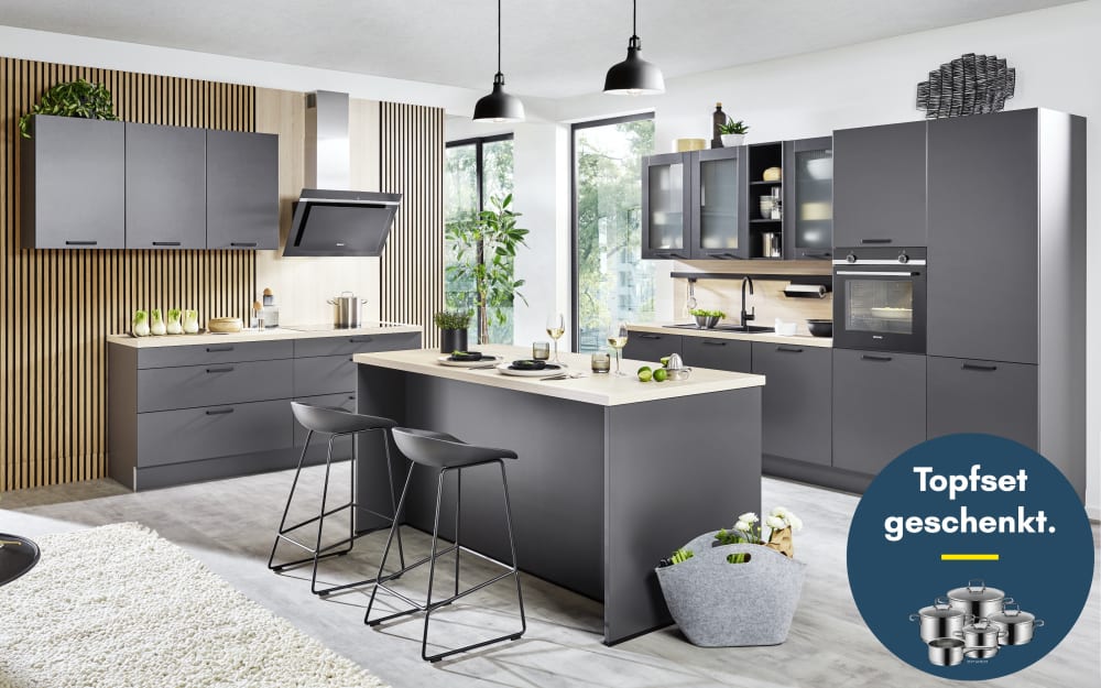 Impressa Einbauküche Uno, graphit, inkl. Elektrogeräte