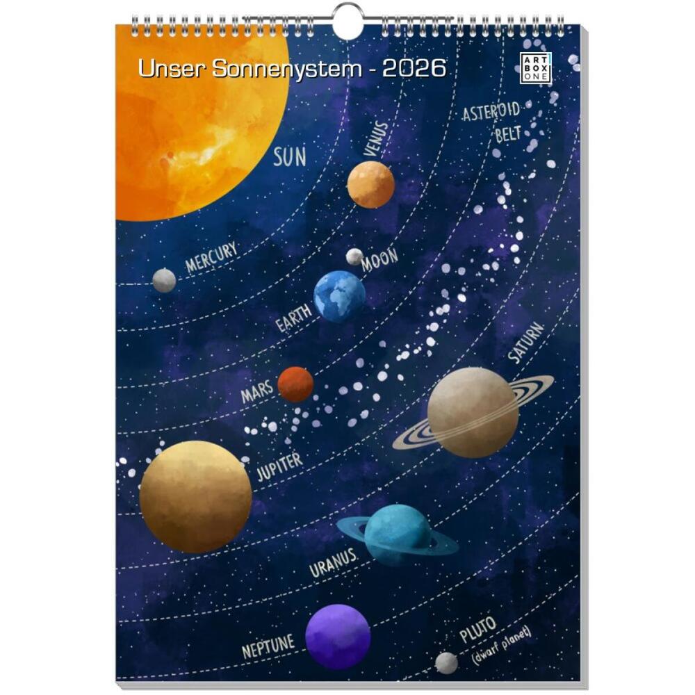 artboxONE Wandkalender A4 2026 Unser Sonnenystem Sonnensystem