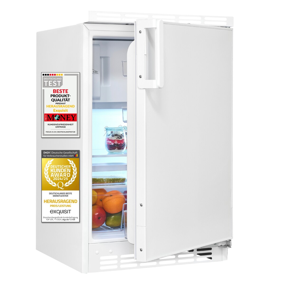 Exquisit UKS130-4-FE-010D Unterbau-Kühlschrank, Nischenhöhe: 82,5 cm, 121L, Festtürtechnik, Schnellgefrieren, weiß