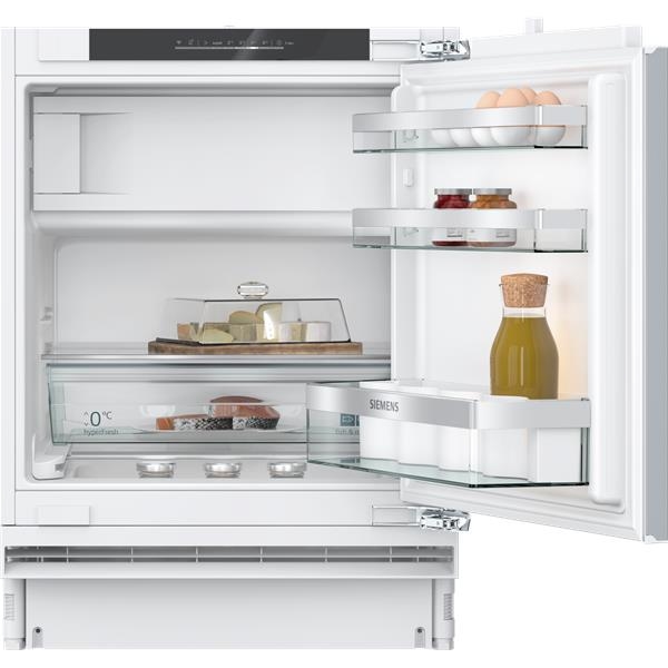 Siemens KU22LVFD0 iQ300 Unterbau Kühlschrank, Nischenhöhe 82 cm, 110 L, Flachscharnier, super Cooling, safety Glas, LED-Beleuchtung