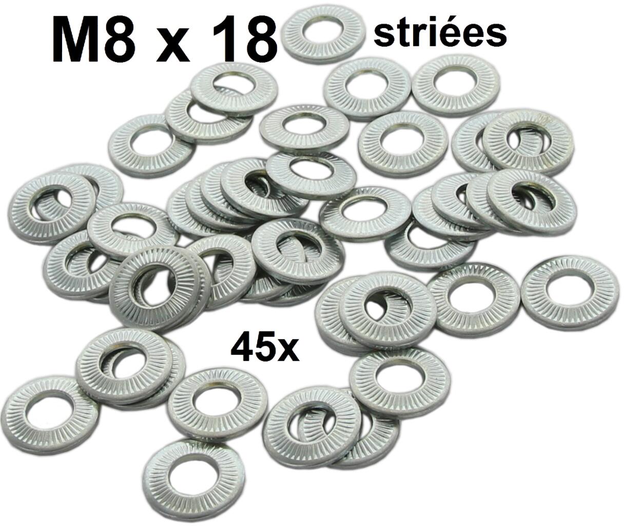 M8, Unterlegscheiben geriffelt M8x18 (Striees). Packungsinhalt 45 Stück