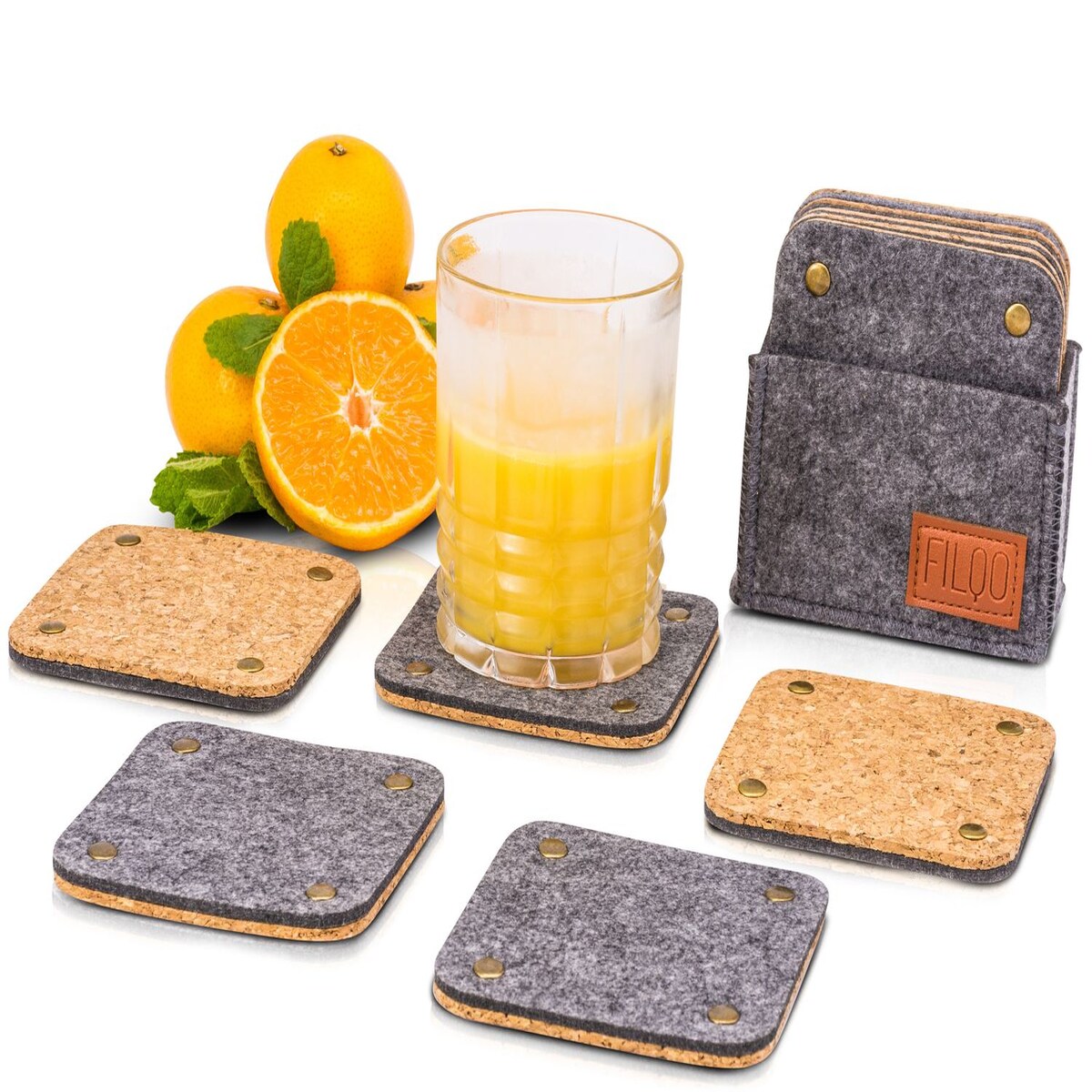 Coemo 8 Stück Untersetzer Kork Filz Glasuntersetzer Anthrazit