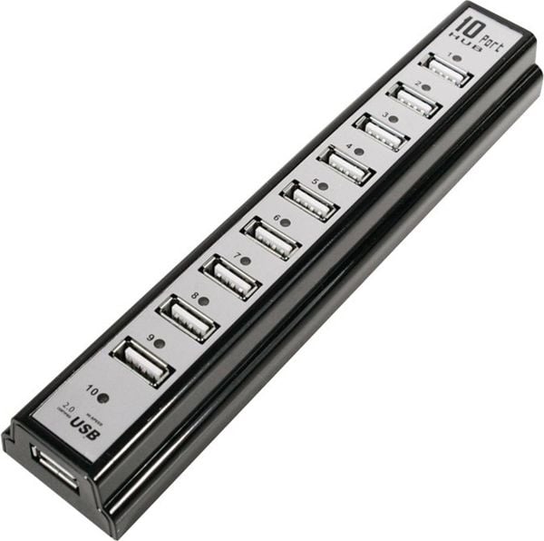 LogiLink USB 2.0 10-Port Hub with On/Off Switch, 480 Mbit/s, Status, Windows 98SE/ME/200/XP/Vista/2003/7, 290 g, 143 x 230 x 70 mm