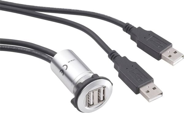TRU COMPONENTS USB-06 USB-Doppeleinbaubuchse 2.0 Buchse, Einbau 2 x USB-Buchse Typ A auf 2 x USB-Stecker Typ A mit 60 cm Kabel Inhalt: 1 St.