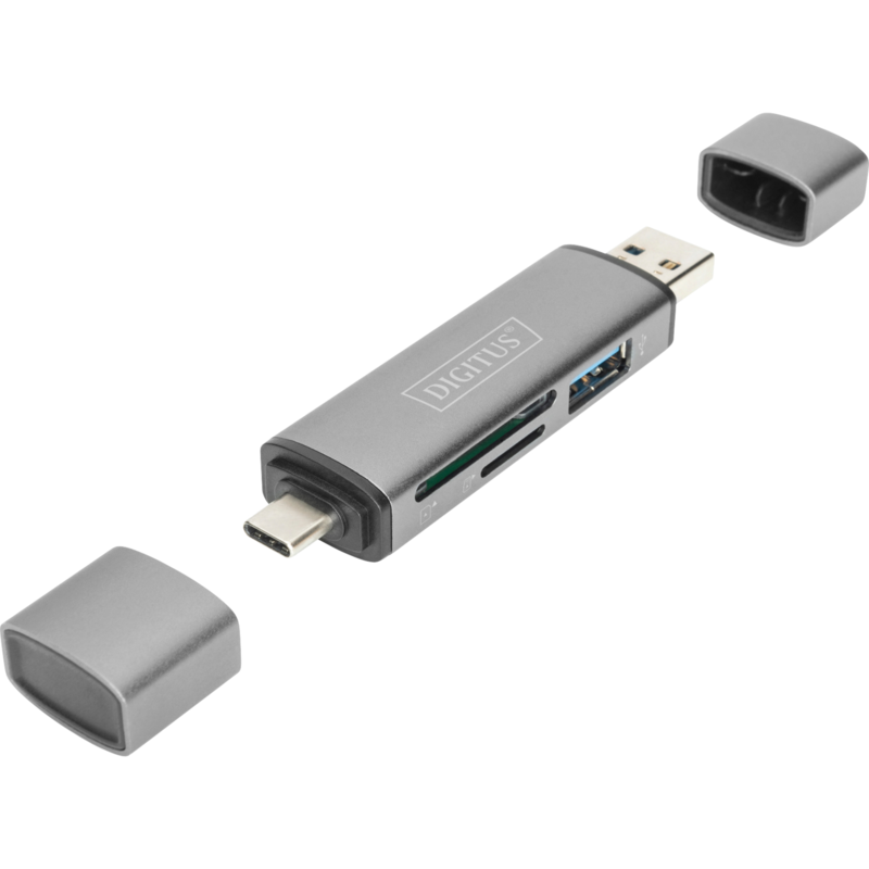 Digitus Dual Card Reader USB-C / USB 3.0, OTG Kartenleser, grau