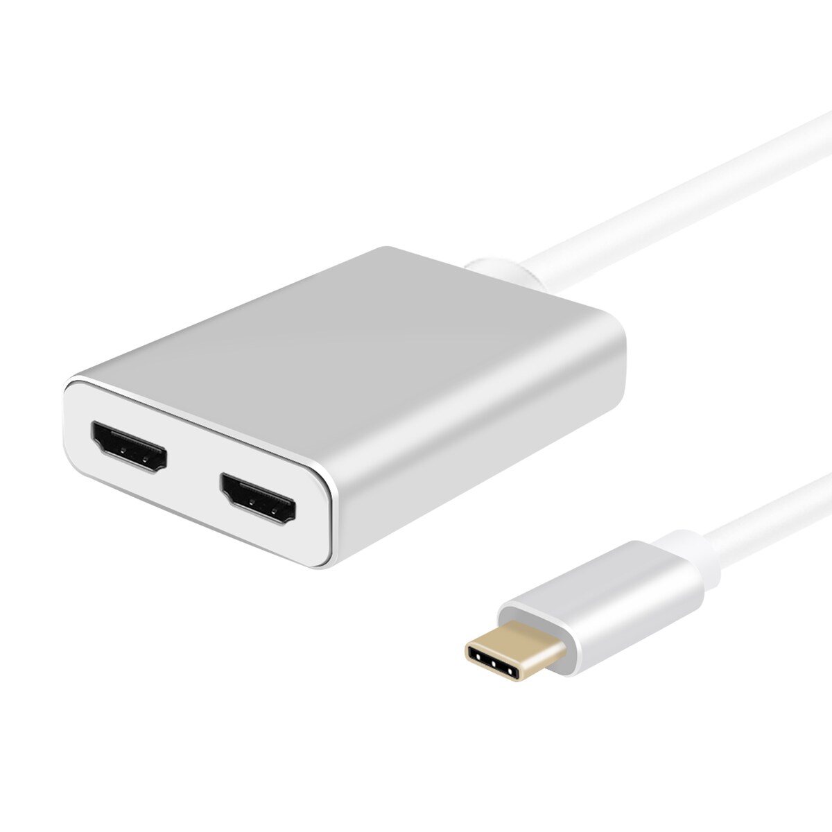Helos Splitter, USB 3.1 Type-C St./2x HDMI Buchse, PREMIUM 4K, silber