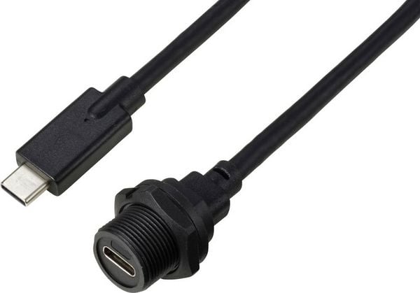 USB-C 3.1 Stecker auf Buchse IP67 (Gewinde) Kabel 0,5m TC-E10T-FT3.1-PWF/MT3.1-NWA-0.5PV-S Wasserdichtes Kunststoffkabel