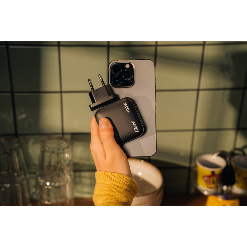Verbatim Mini-GaN-Ladegerät 100W 4-Port, 1x USB-A , 3x USB-C, schwarz, PD 3.0