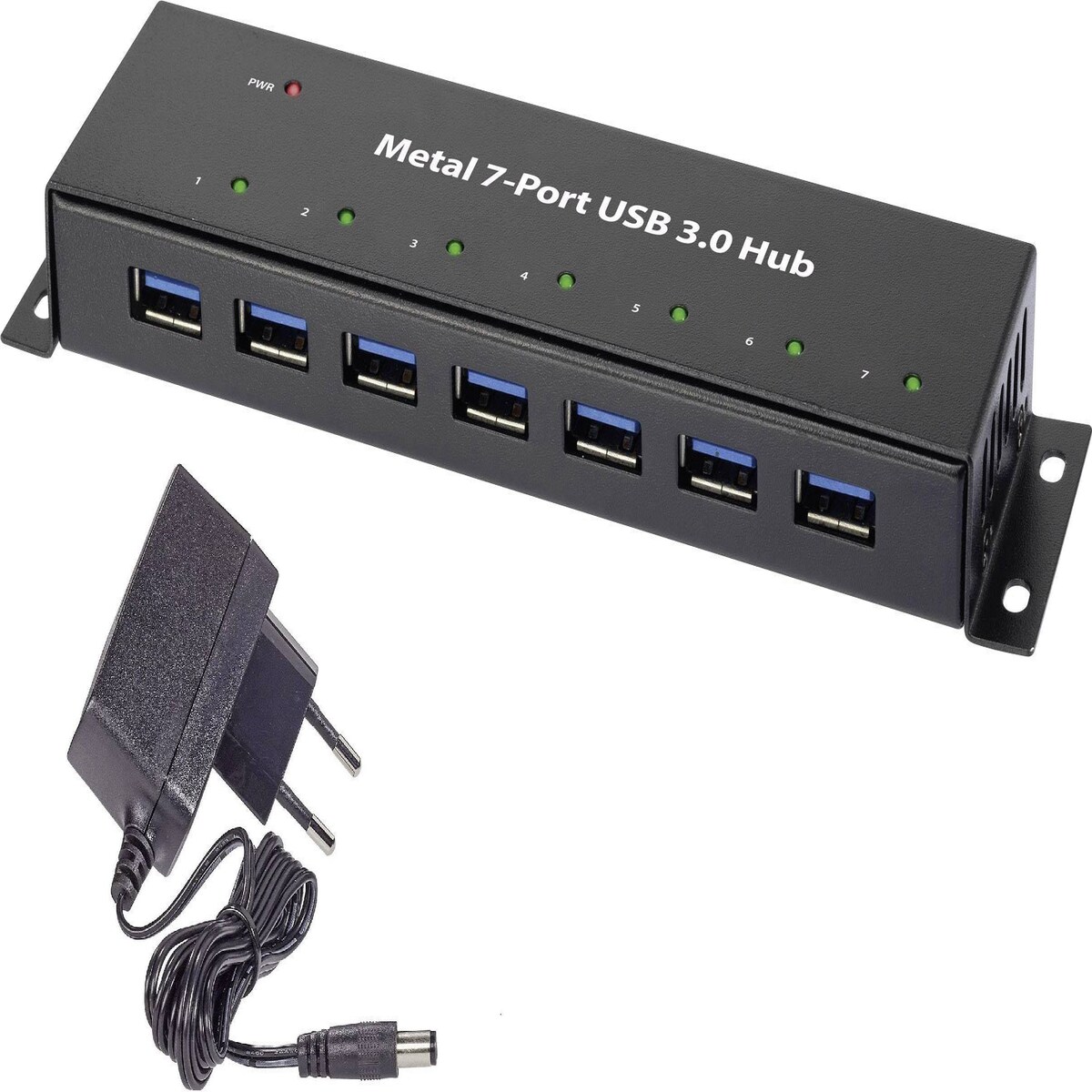 Renkforce RF-3955359 7 Port USB 3.2 Gen 1-Hub (USB 3.0) zur Wandmontage, Metallgeh?use Schwarz
