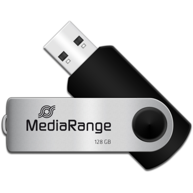 MediaRange Flexi-Drive 128 GB USB-Stick, schwarz/silber, USB-A 2.0
