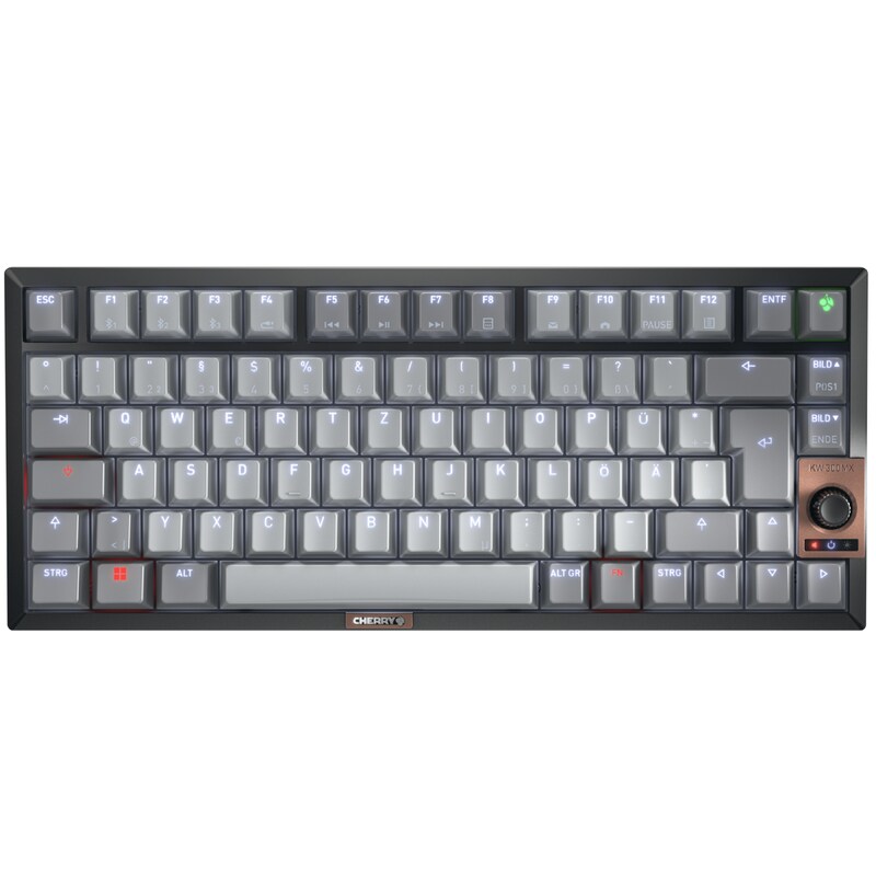 Cherry KW 300 MX Schwarz | Kompakte Hotswap-Tastatur, MX2A Silent Red Switches, schallgedämpftes Gehäuse, Bluetooth, USB-C