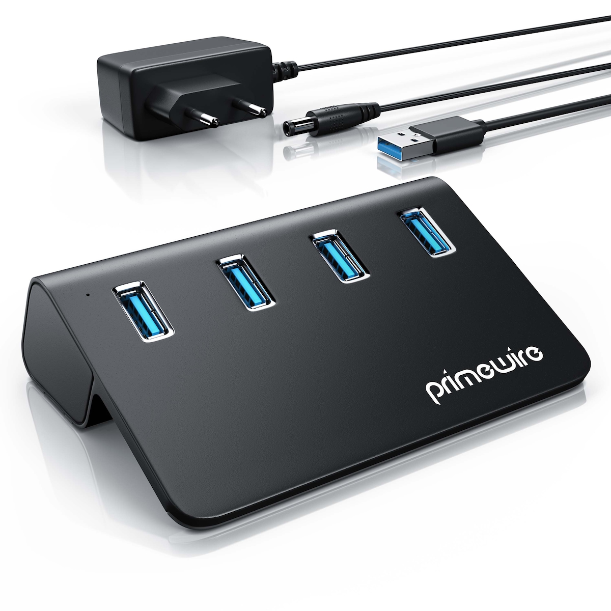 Primewire USB 3.2 Gen2 Hub, 4 Port Aktiver Verteiler mit Netzteil, 10 Gbit/s