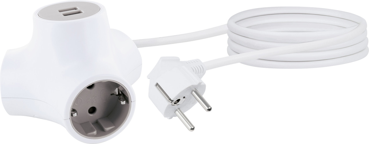 Schwaiger Y-Steckdosen-verteiler, 3-fach+2 3x Haushaltsstecker Typ F, 2x USB