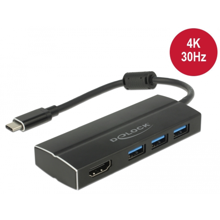 DeLOCK USB 3.2 Gen 1 Hub, USB-C Stecker > 3x USB-A Buchse + HDMI Buchse USB-Hub