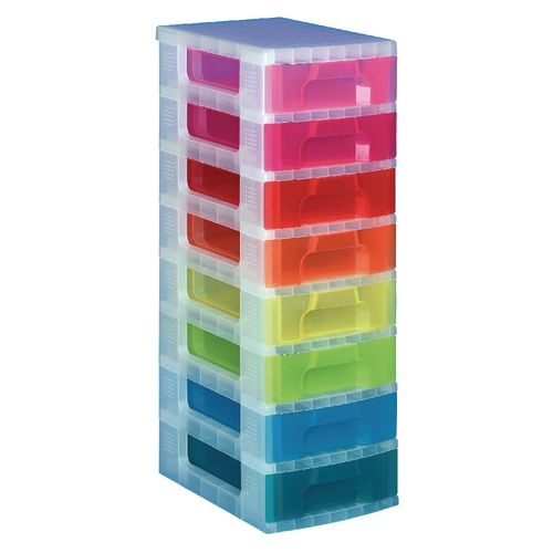 Really Useful Box Aufbewahrungs-Boxenturm 8 Schubladen Regenbogen-Farben
