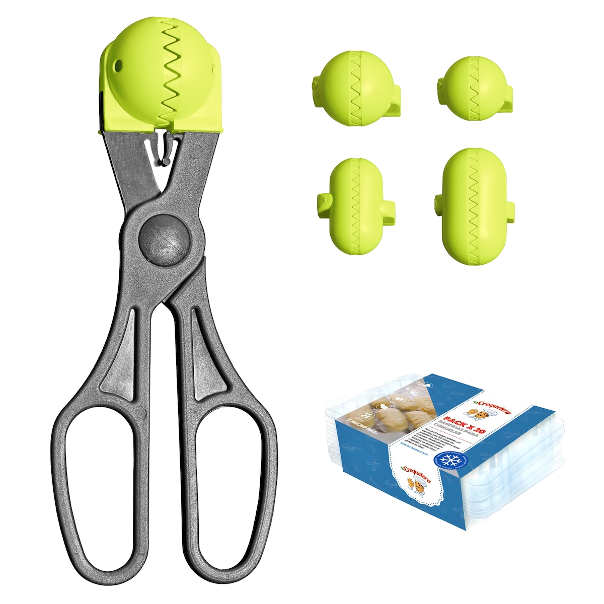 La Croquetera - Set mit multifunktionalem Utensil mit 4 austauschbaren Formen und 20 Aufbewahrungstabletts für Kroketten in Türkis