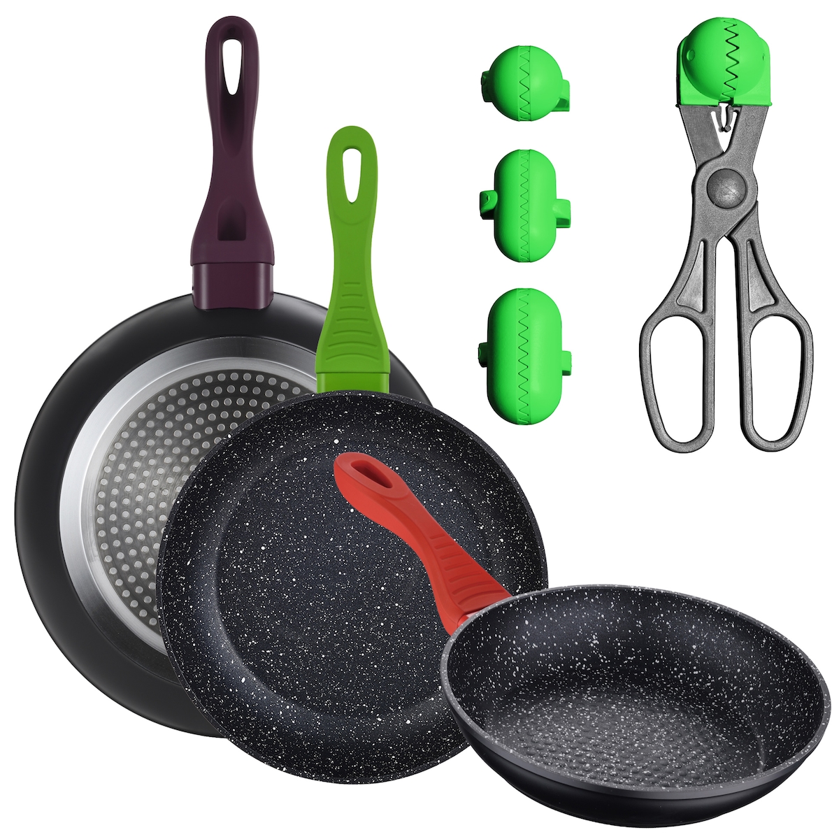San Ignacio - Set aus 3 Pfannen 20/24/28 cm aus geschmiedetem Aluminium mit vielseitigem Utensil und 4 wechselbaren Formen