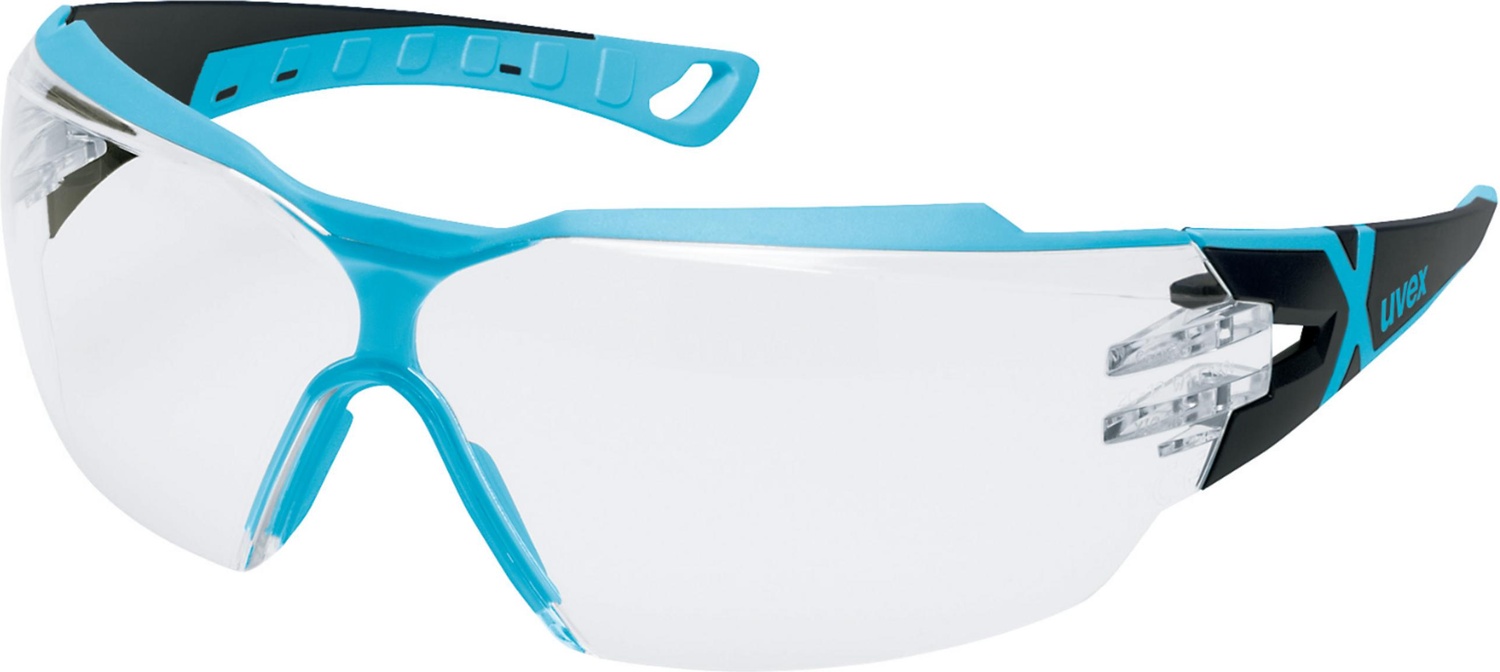 Bügelbrille uvex pheos cx2, PC-Scheibe farblos, Bügel schwarz/hellblau, supravision excellence