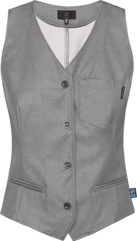 Greiff GASTRO MODA Service Damen Kellnerweste V-Ausschnitt Knopfleiste Regular Fit Baumwollmix Denimoptik Grau M