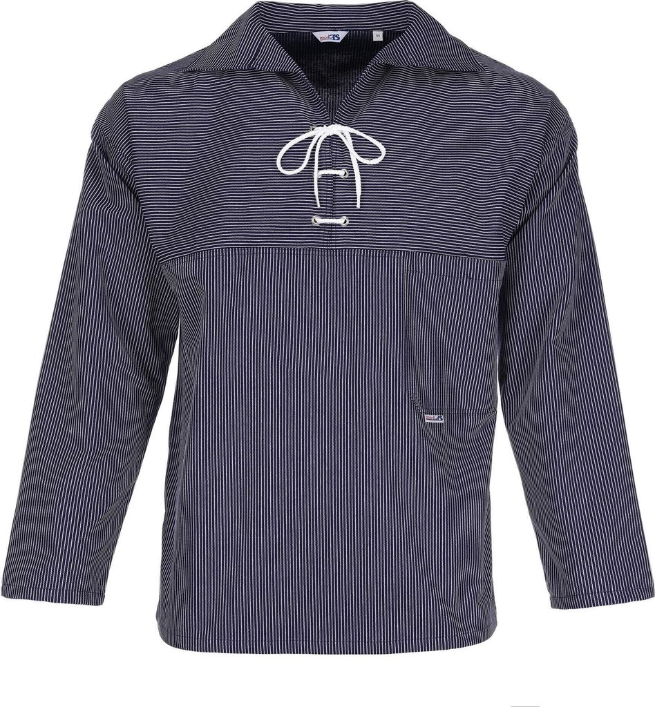modAS Uni Original Takelhemd mit V-Ausschnitt mit Kordelschnürung - Maritimes Fischerhemd mit Brusttasche mit schmalen Streifen in Blau Größe Da...