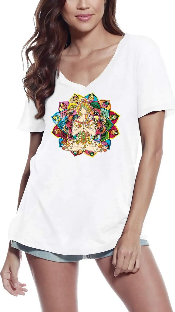 Damen Grafik T-Shirt V-Ausschnitt Chakren - Retro-Stil moda meditation – Chakras - Retro Style Moda Meditation – Öko-Verantwortlich Vintage Ja...