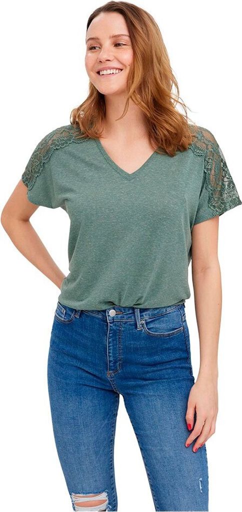 Damen Vero Moda VMROSA LS V-NECK LACE TOP GA JRS NO, Grün, L, Damen-Shirts, Tops-Longsleeves