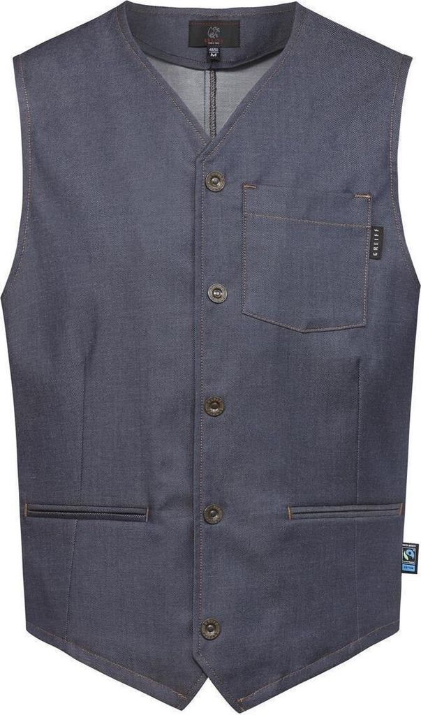 Greiff GASTRO MODA Service Herren Kellnerweste V-Ausschnitt Knopfleiste Regular Fit Baumwollmix Denimoptik Marine S