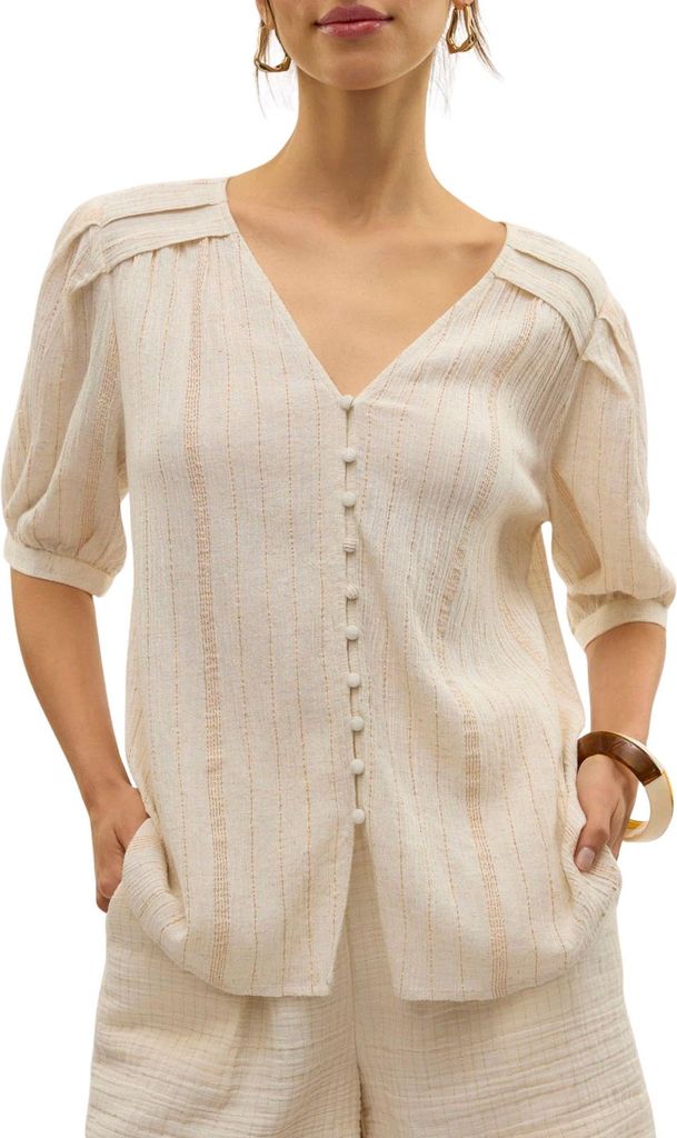 Vero Moda V-Ausschnitt-Shirt creme-goldfarben Gr. 34 Damen