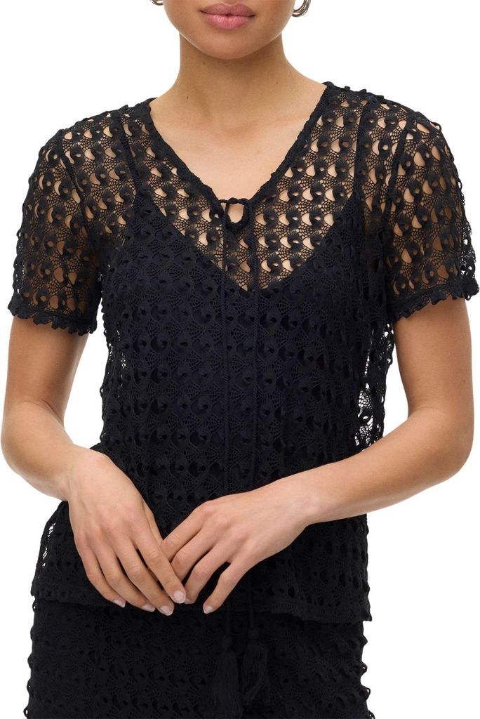 Damen Vero Moda VMROSA LS V-NECK LACE TOP GA JRS NO, Schwarz, S, Damen-Shirts, Tops-Longsleeves