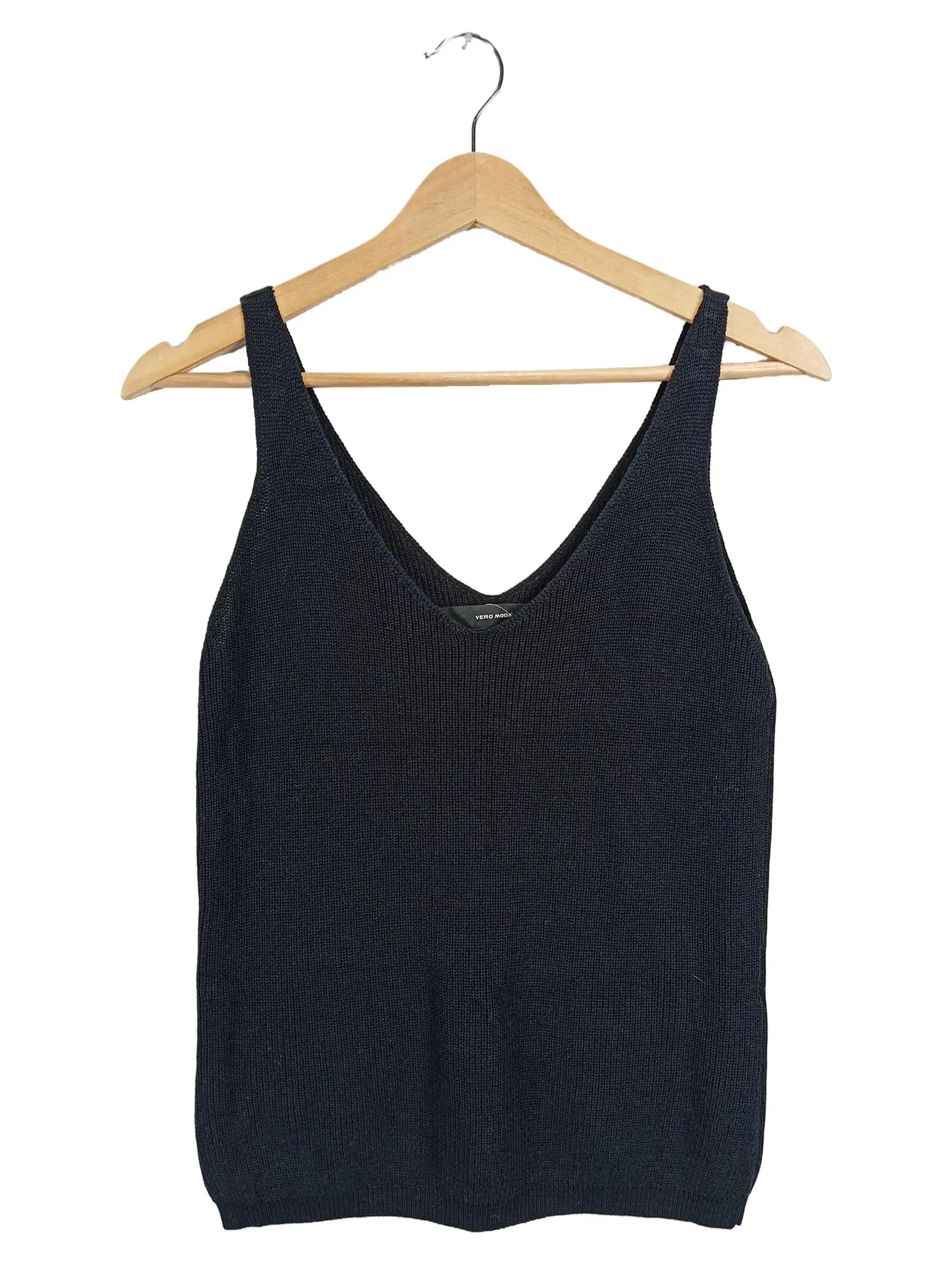 VERO MODA Damen Stricktop Schwarz Gr. M Basic V-Ausschnitt Tanktop