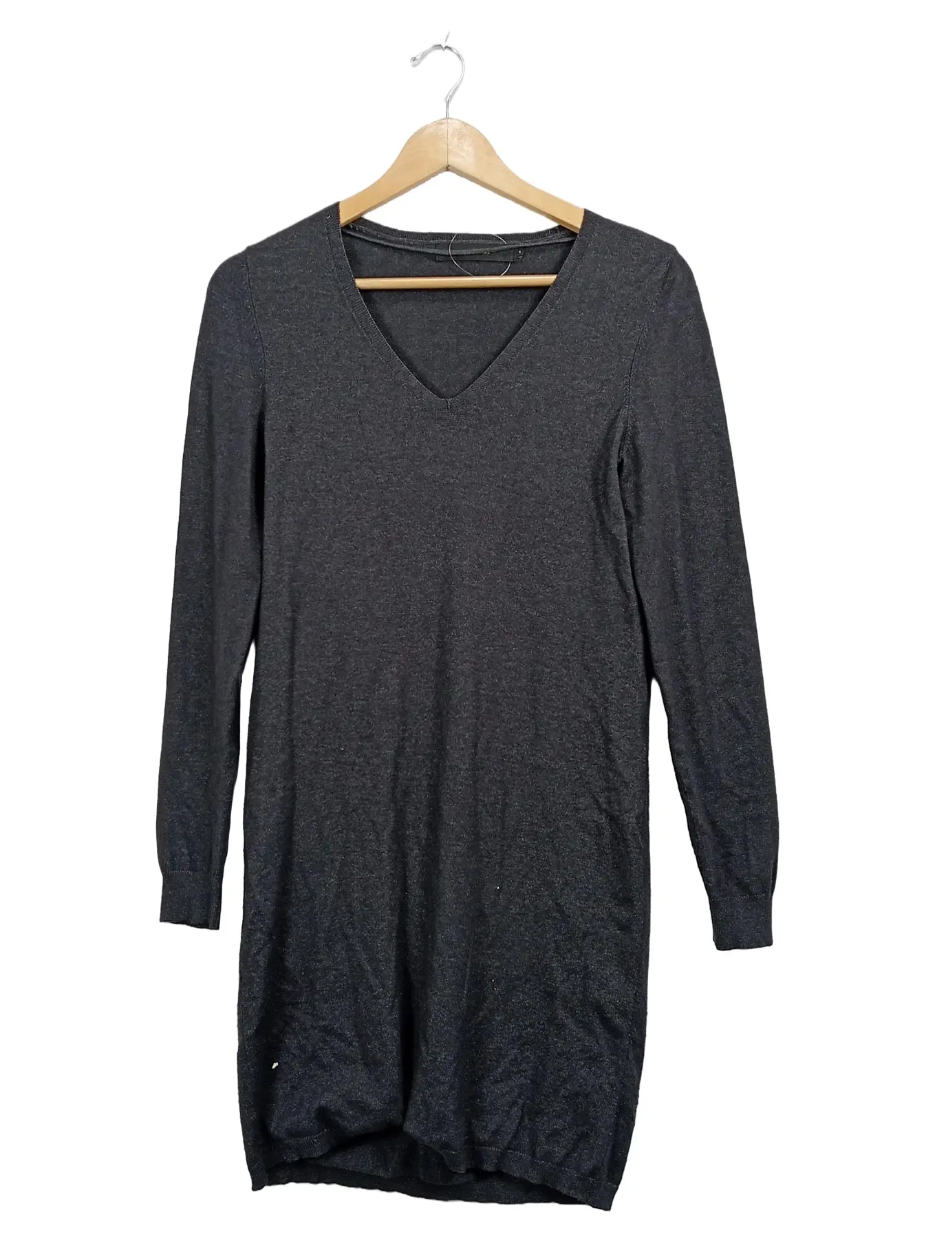 VERO MODA Strickkleid Damen Gr. S Grau V-Ausschnitt Langarm Basic