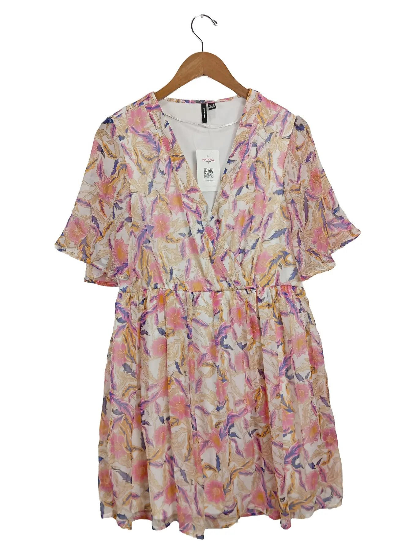 VERO MODA Damen Freizeitkleid Gr. 38/M Mehrfarbig Floral Sommer V-Ausschnitt