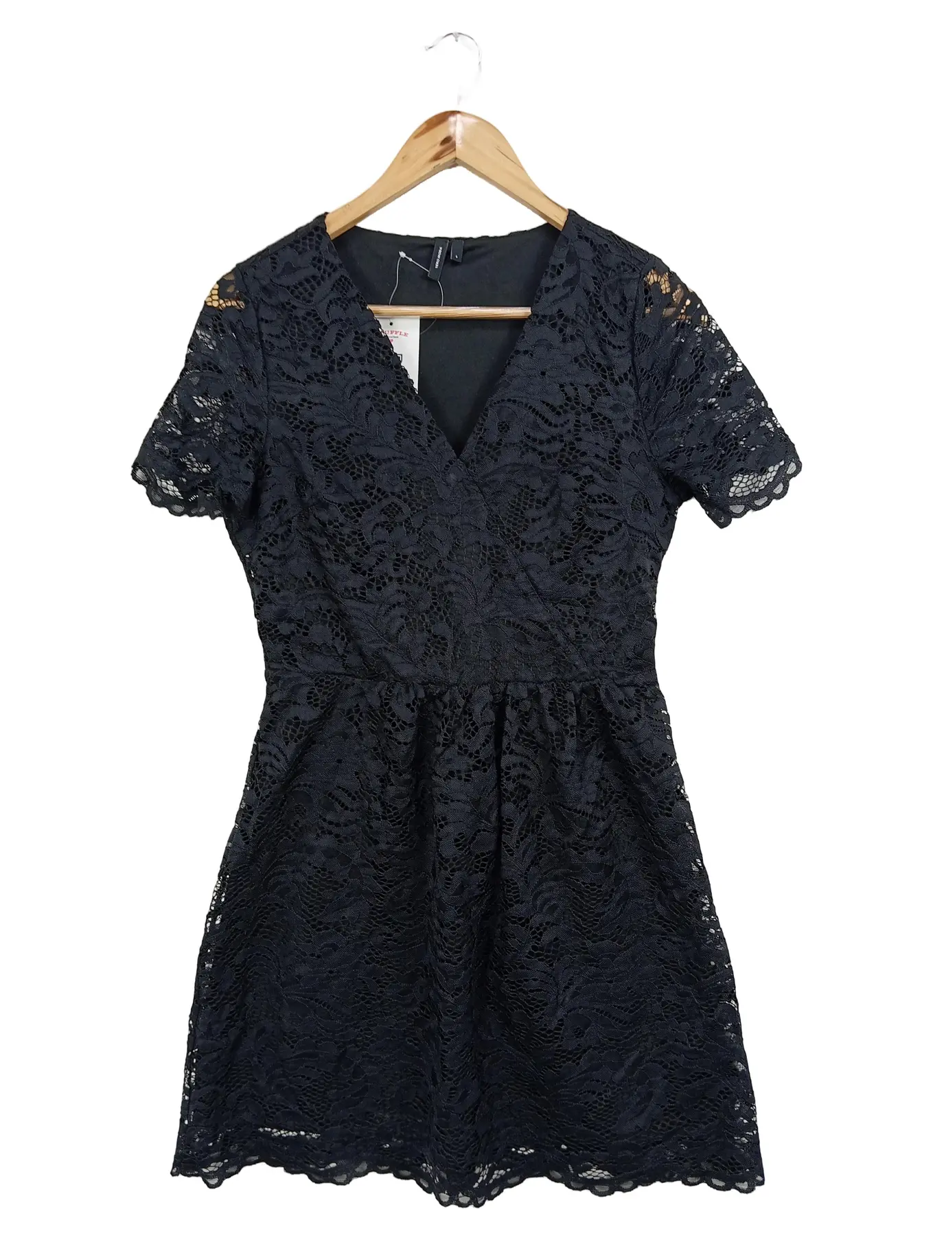 VERO MODA Spitzenkleid Damen S 36 Schwarz Elegant Festlich V-Ausschnitt