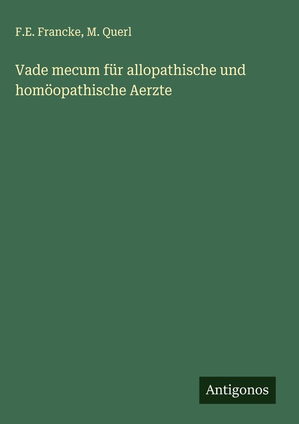 Vade mecum für allopathische und homöopathische Aerzte, Taschenbuch von F. E. Francke , M. Querl, Antigonos Verlag, 9783563457559
